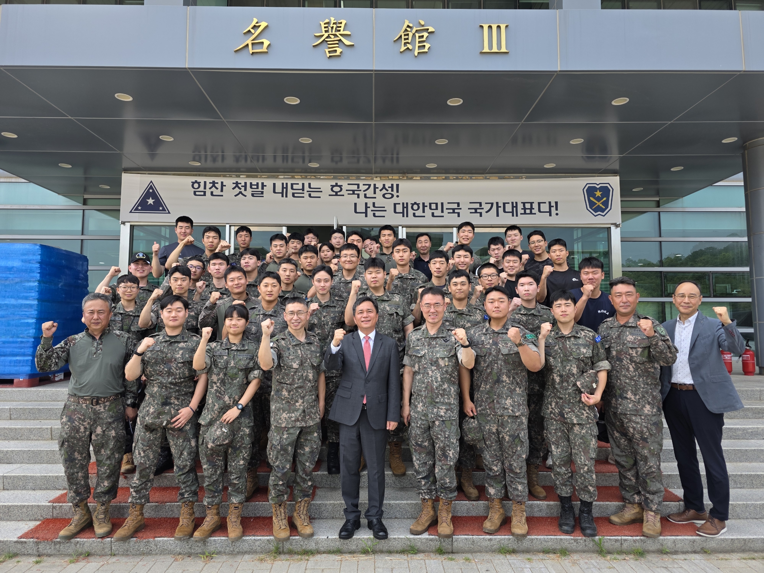 다. 훈련 중 대학 총장님 학군교 방문, 후보생 격려 (7.8, 화요일)