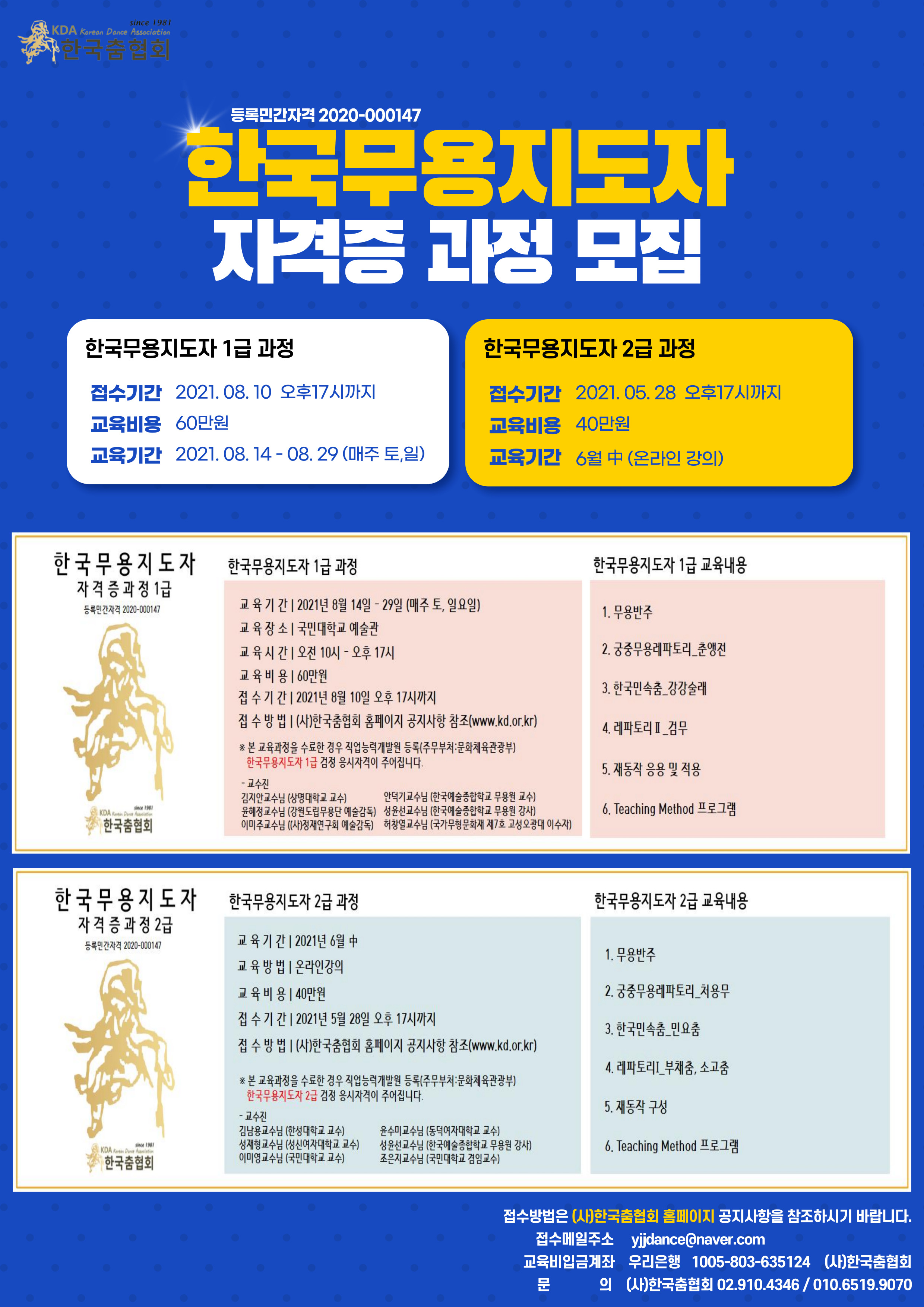 - [자격증] 한국춤협회 한국무용지도자 자격증 과정 (2급/1급) 모집